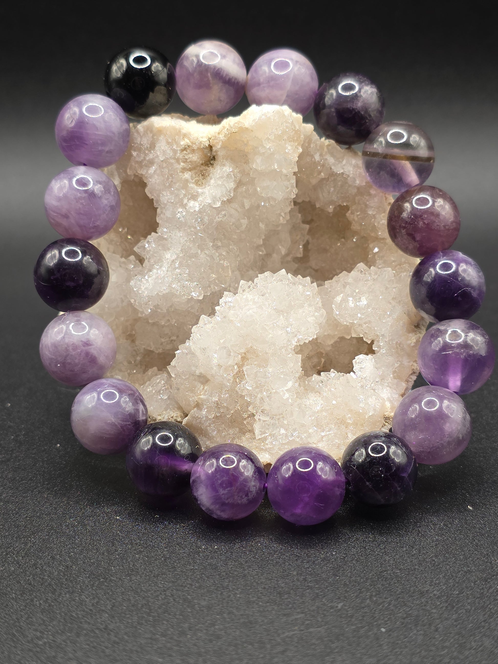 Deep violet Amethyst beads in a bold large-bead style bring intuition and calm into clear focus. The chunky polish gives this bracelet a commanding presence while amplifying its peaceful, protective energy. A showpiece for both meditation and everyday wear.