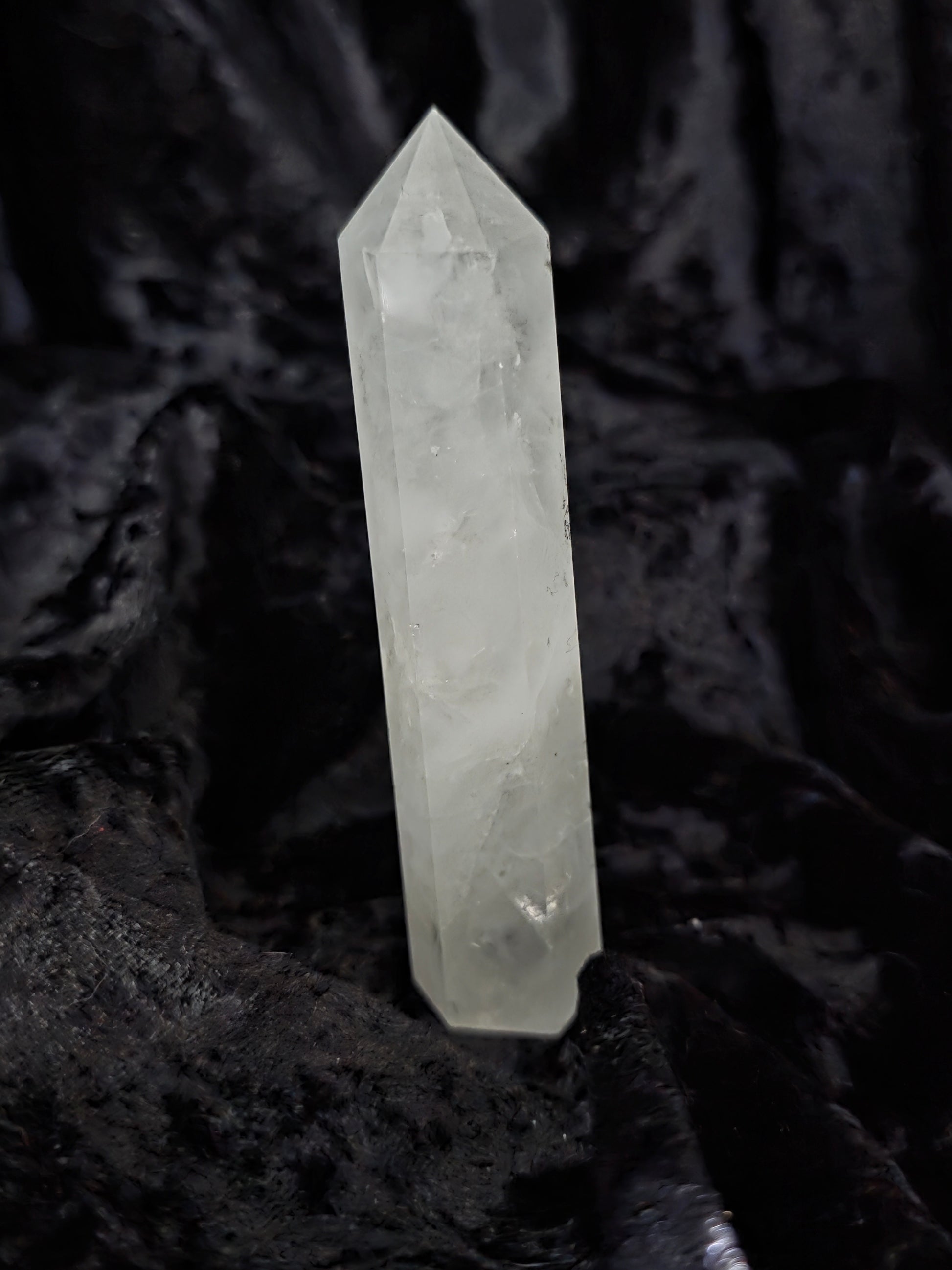 Crystal-clear focus, high-voltage intention. This quartz tower acts like a megaphone for your manifestations, channeling light through every facet.