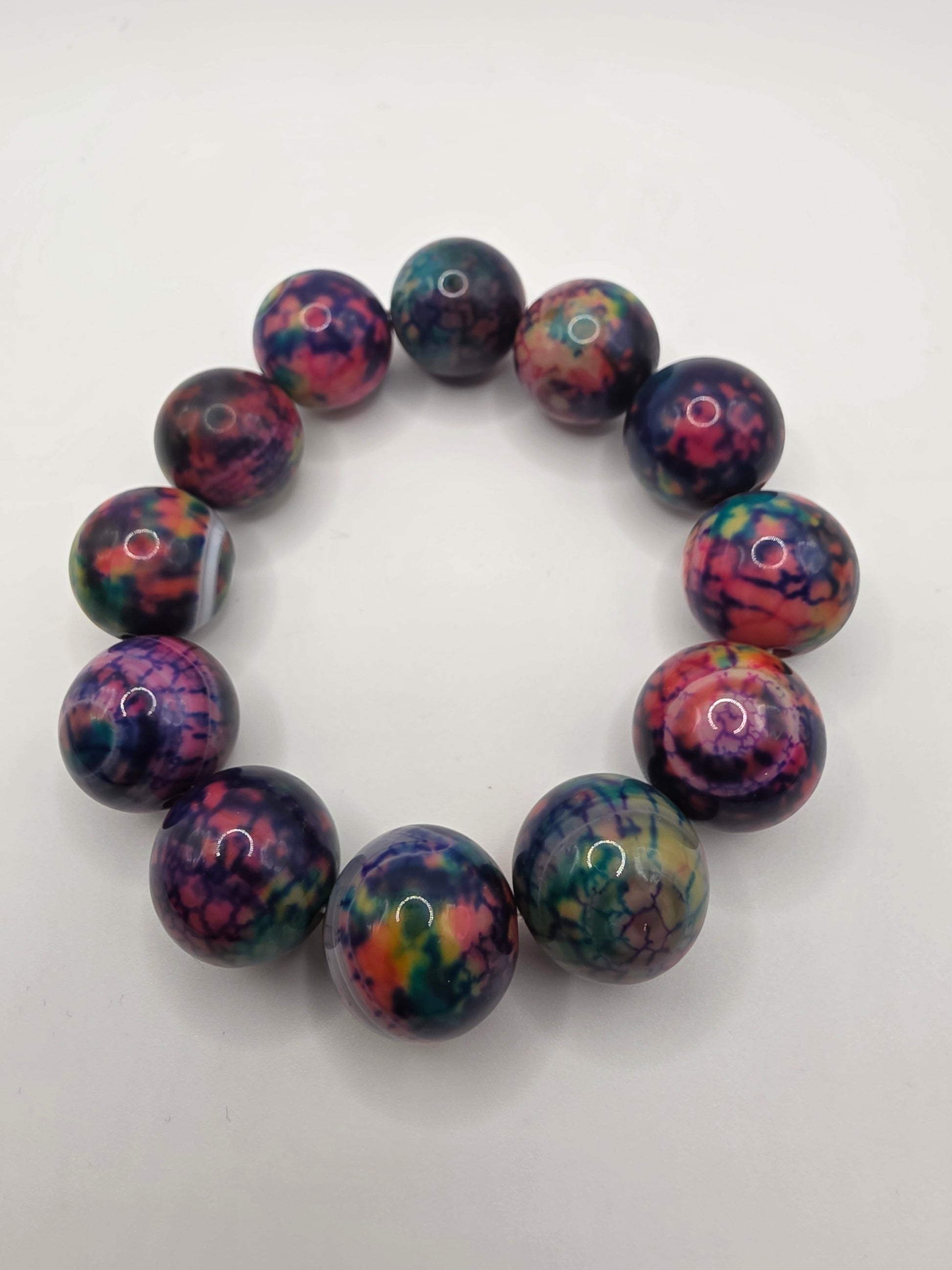 Massive 20mm beads of Dyed Rainbow Agate burst with vibrant hues, symbolizing joy, confidence, and creative power. Each bead is a world of color and positivity, perfect for those who radiate brightness wherever they go.