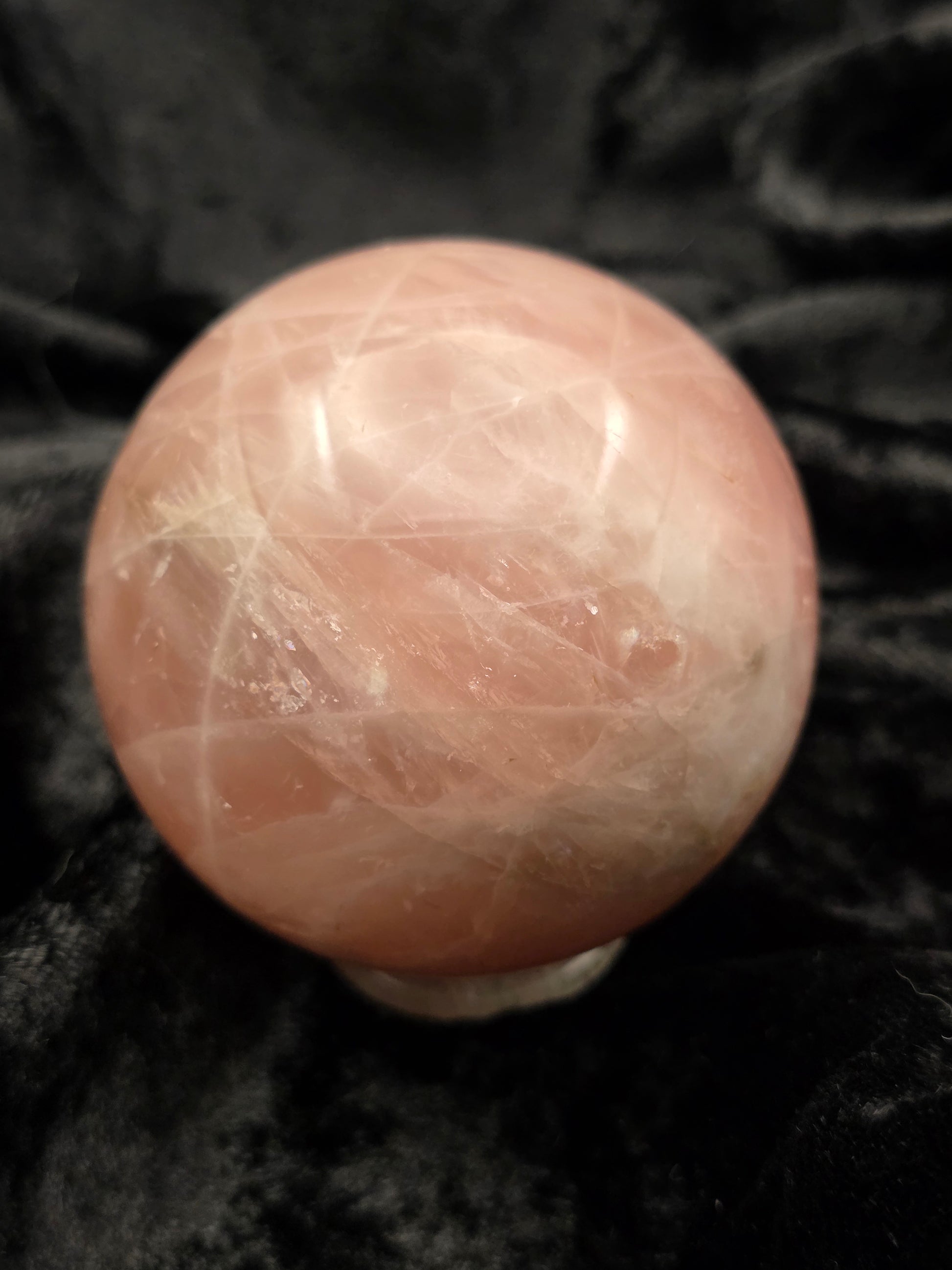 The soft romance of rose quartz meets lavenderโs dreamy glow. This sphere is all about heart healing and tender self-love, dressed up in rare tones.