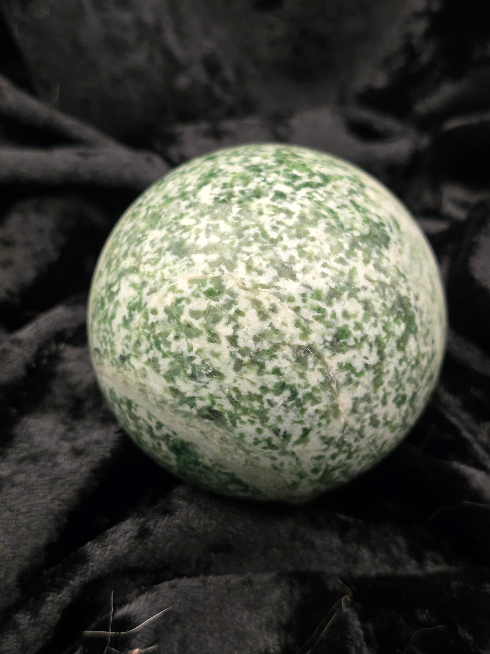 Veins of forest green weave through this mossy beauty, grounding you with nature’s steady rhythm. A sphere that whispers: “grow slow, grow strong.”