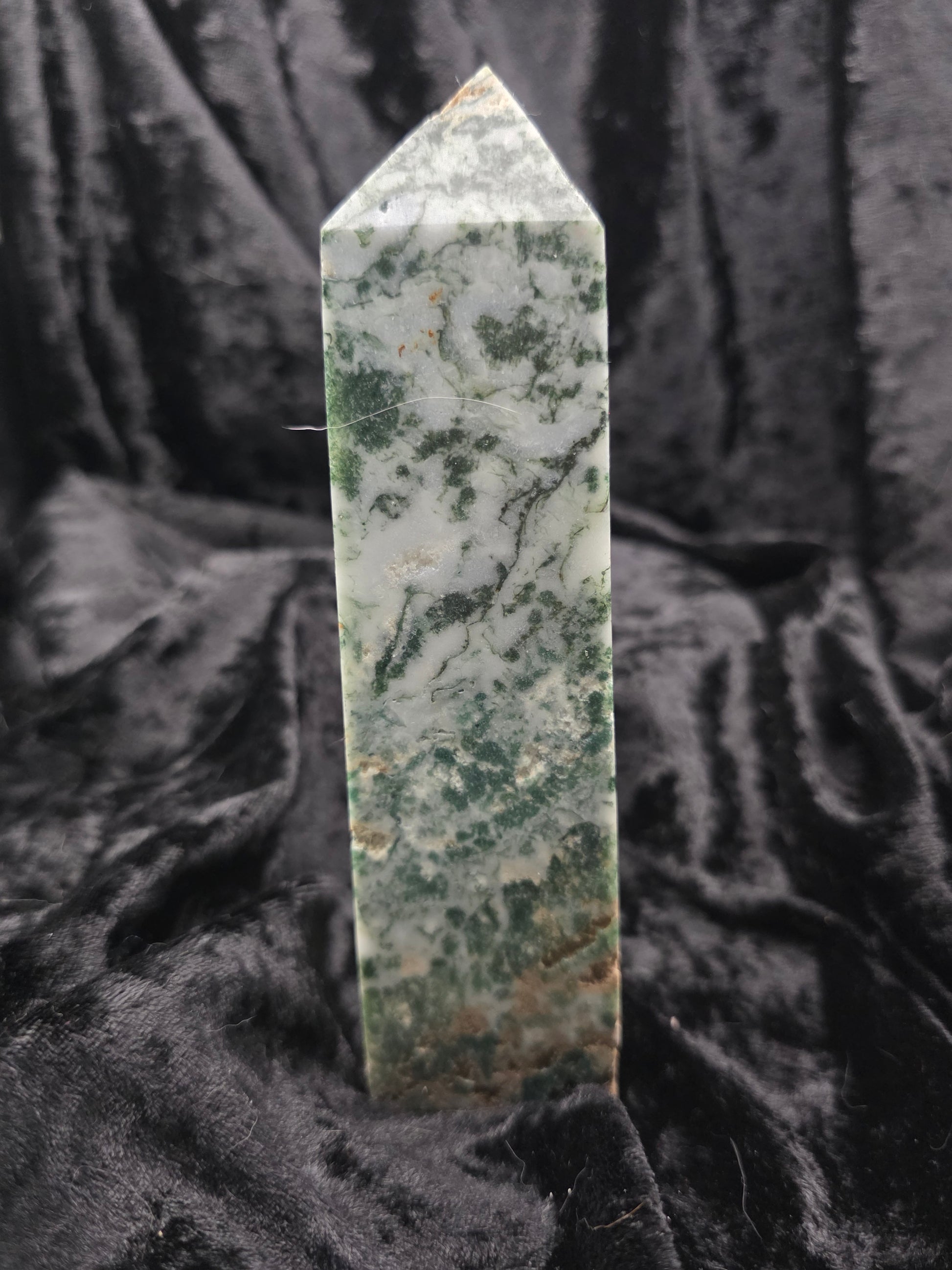 Mossy green patterns flow through this tower like forest vines. Moss Agate reminds you to grow steady and stay rooted in your truth.