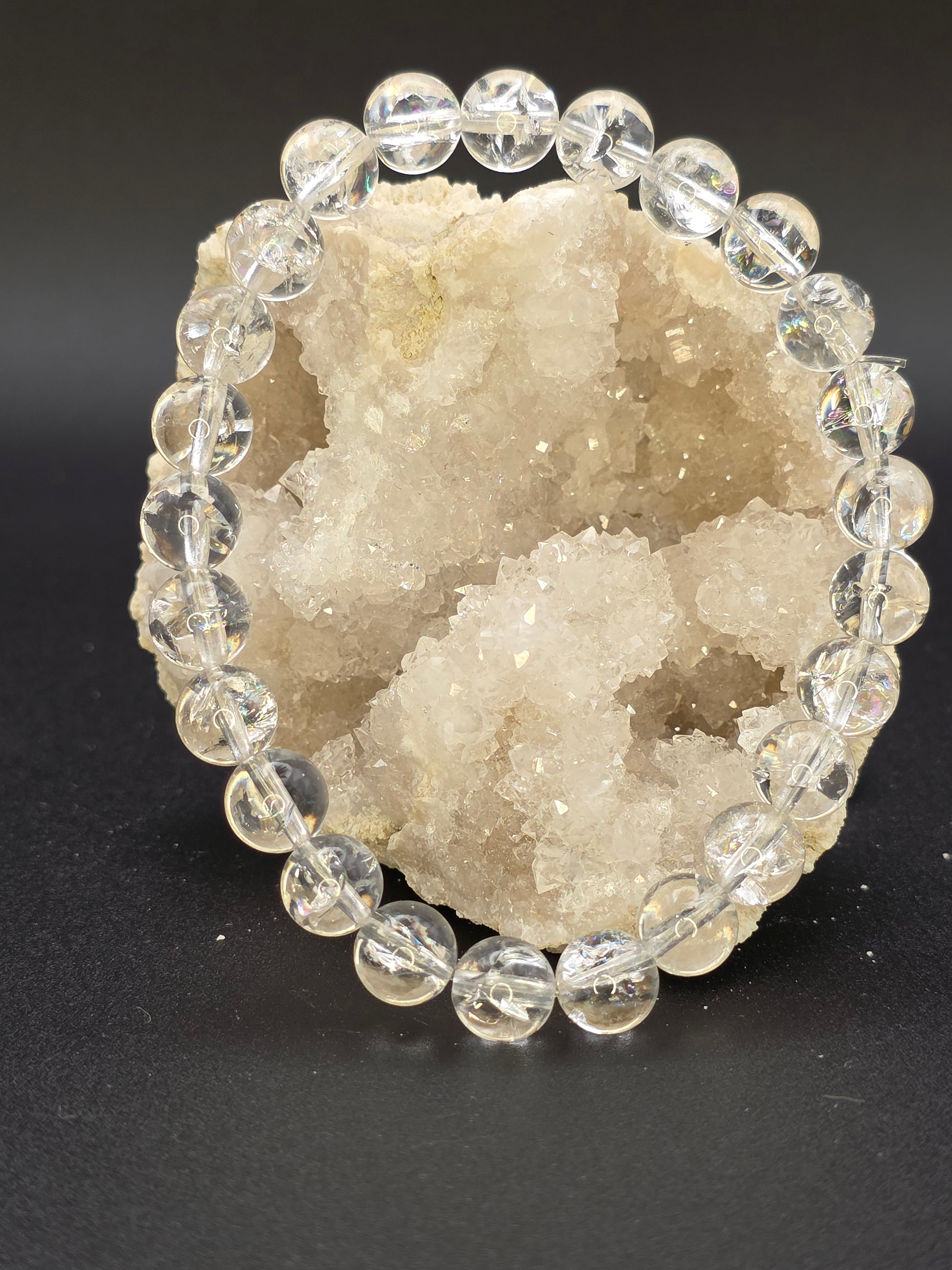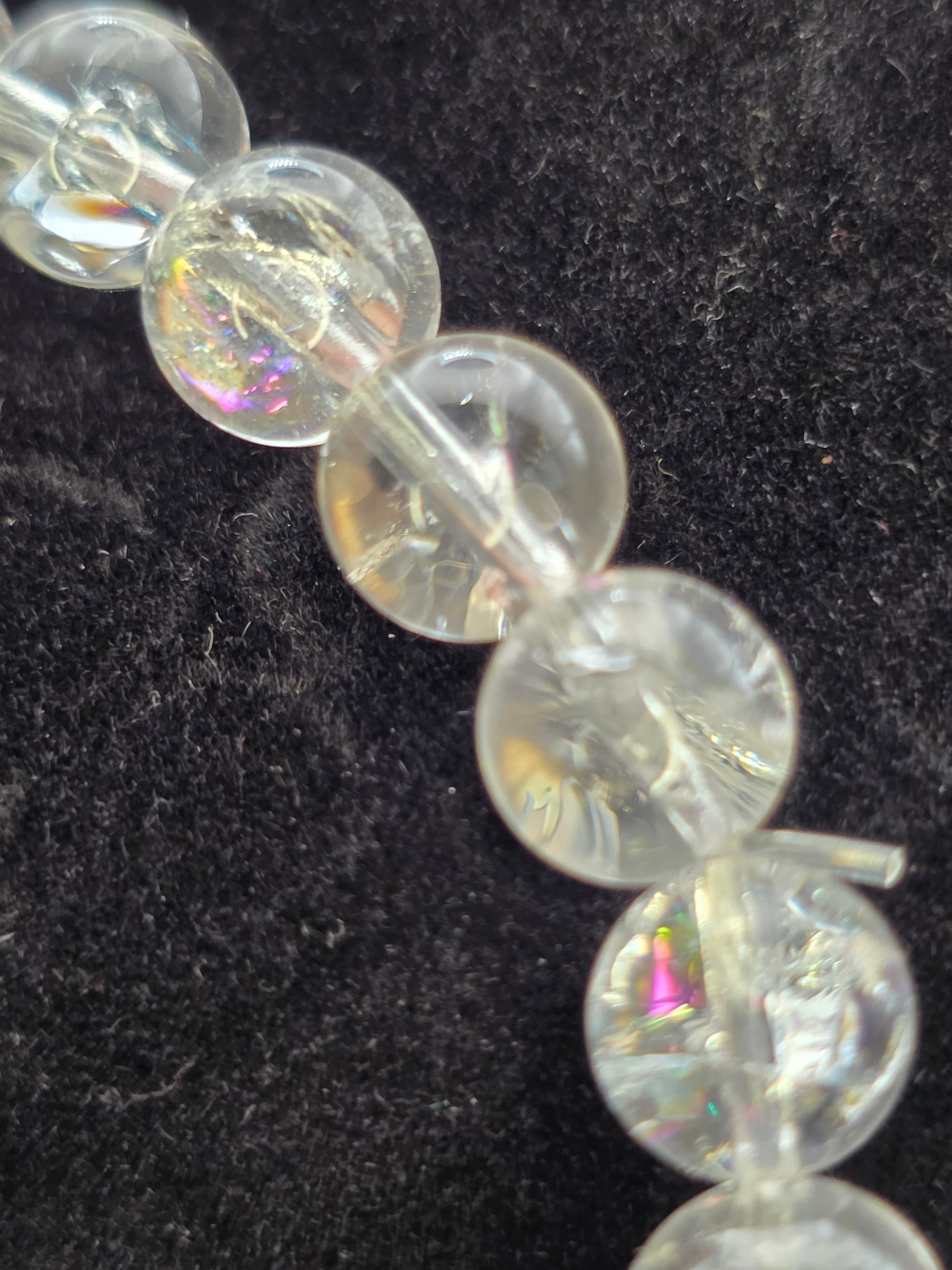 These 6mm Rainbow Quartz beads shimmer with iridescent brilliance, amplifying positivity and creativity. A joyful reminder that your energy shines brightest when you embrace every color of your soul.