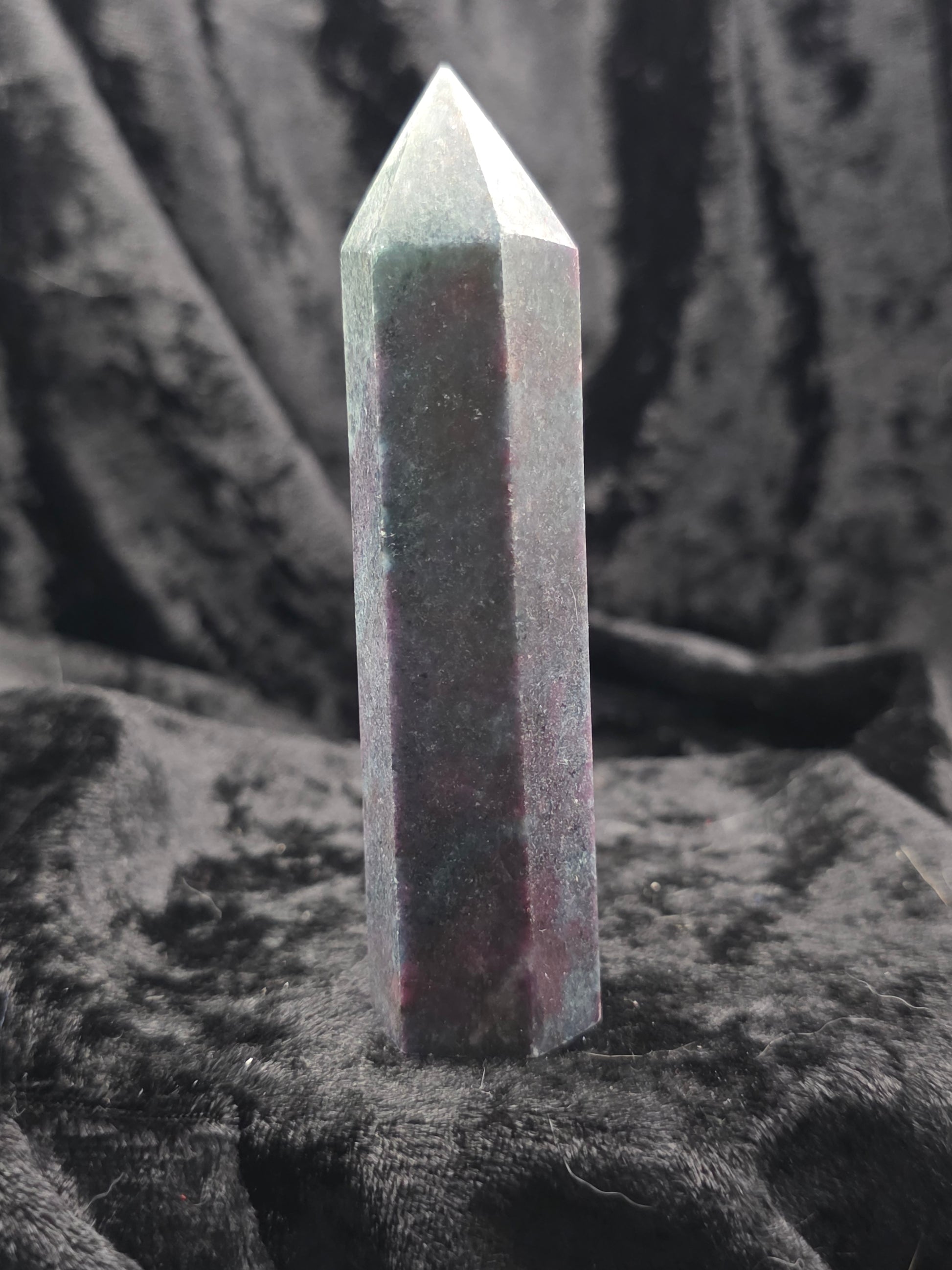 Rubyโs fierce glow (yes, she pops under UV) threads through cool, steady Kyanite for power-with-peace energy. A talisman for aligned actionโbold moves without losing your center.